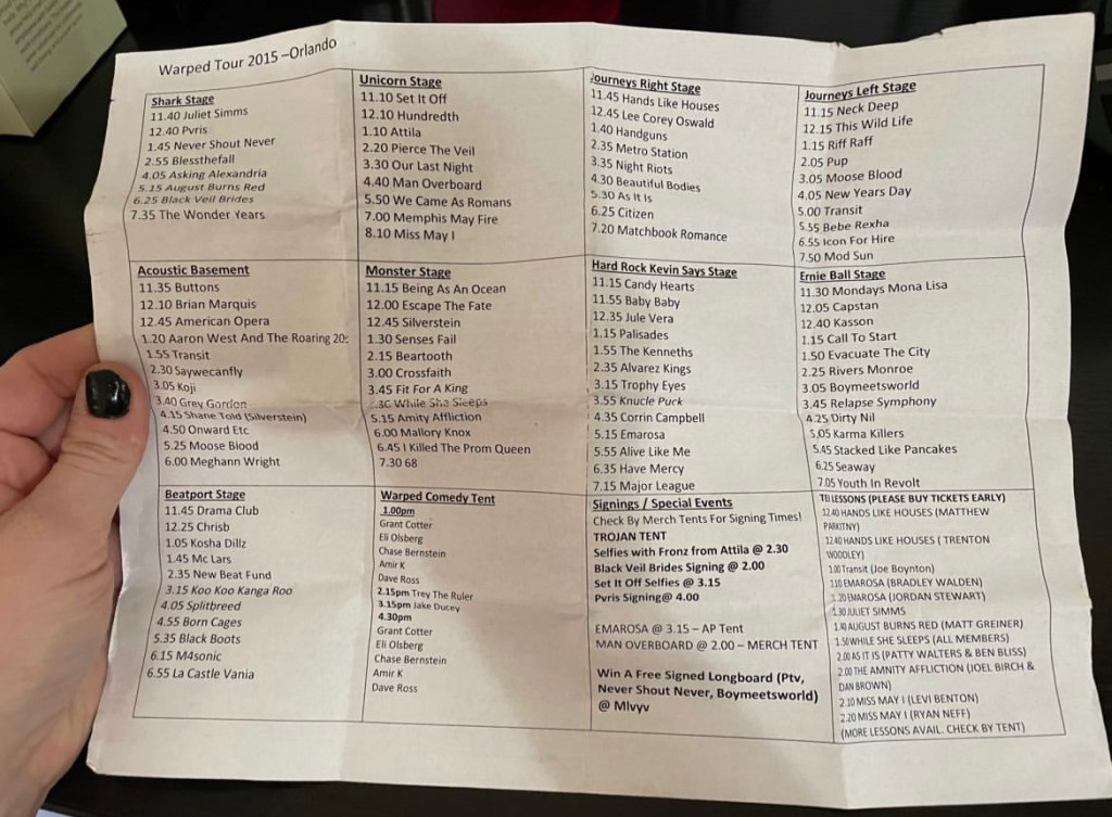 I think the Backbooth has closed since then (or maybe it’s just moved locations. Correct me if I’m wrong.) But out of all the venues I went to in Orlando, this was definitely the most intimate. My cousin and I stood in the sea of people, but we were still almost at the front of the stage with how small the space was—and I’m not exaggerating when I say this was one of the best shows I’ve ever been to. Even though I got hit in the head with a rogue water bottle (but I’m pretty sure that wasn’t malicious.)